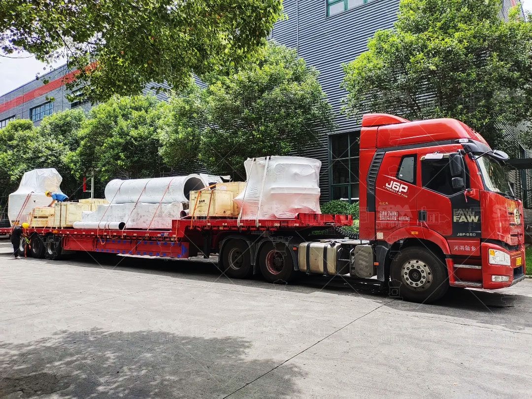 質檢無誤后,工作人員進行防潮防損包裝,吊裝到車,操作完畢后發往客戶現場。